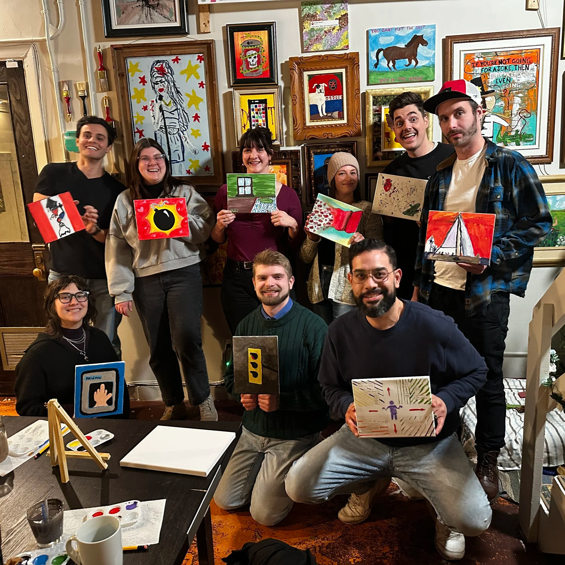 This is NOT an art class, it’s a fun-first creative hang. No experience required, no pressure, no judgement. Just show up, unwind in a cozy art studio that feels like home, and leave with something cool that you made.